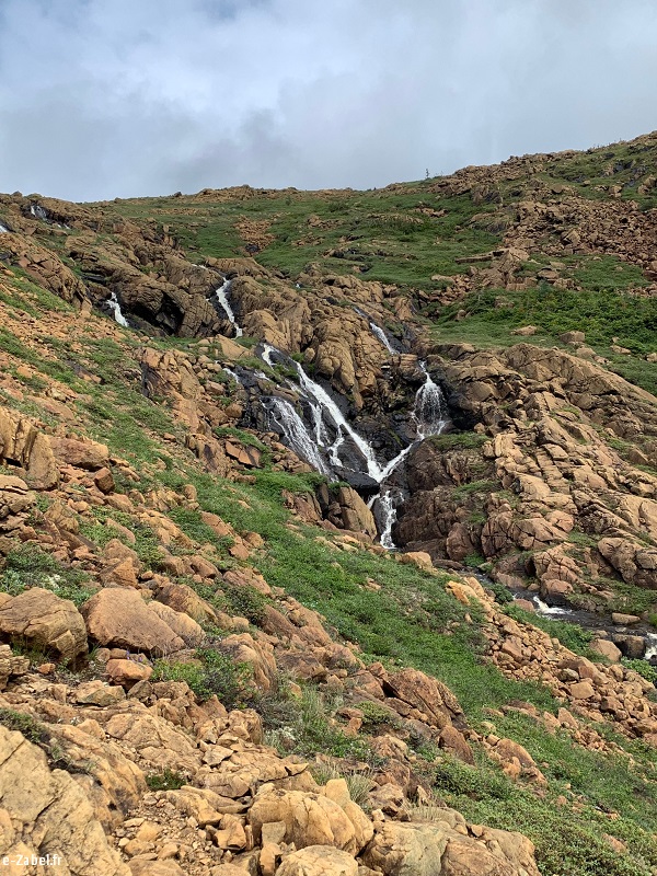 Ici, on a choisi la plus difficile : la fameuse randonnée du Mont Albert avec le retour par la vallée du diable, en tout plus de 22 km, avec un dénivelé de malade mentale de près d’1 km. On en a bavé (surtout qu’on a fait toute la montée durant 2h sous une pluie fine et qu’on est arrivé au sommet sans aucune visibilité)… heureusement tout s’est dégagé ensuite et là, encore une fois… WHAOU : toundra alpine et roches de couleurs orangées. Cette roche orangée est de la serpentine, ce qui est très rare en Amérique du Nord. C’était très difficile en effet mais comme a dit l’ado « heureusement que c’est magnifique !!! » Elle a parfaitement résumé ! J’ai VRAIMENT eu du mal à faire une sélection de mes photos…