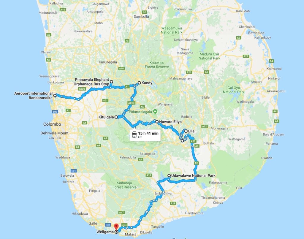 Nous avons fait le choix de ne pas tout voir. Parce que le Sri Lanka a beau être une ile : elle est grande, mais surtout avec les routes petites, embouteillées dans les villes et bien souvent sinueuses (tout le centre est très montagneux). Le moindre trajet est donc long. On ne regarde pas en kilométrage mais en temps. Et même si les paysages sont absolument démentiels. On a mangé beaucoup de voitures… Donc avec le recul, je ne suis pas mécontente d’avoir zappé des étapes et j’en aurai même supprimé un peu plus !